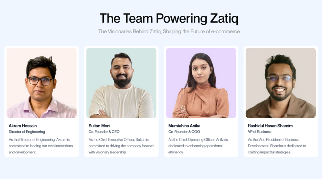 Zatiq’s CEO Sultan Moni’s wife, Mumtahina Anika, used social media to run her business. While managing this business, she frequently faced difficulties related to website creation, financial transactions, product delivery, and inventory management. These personal challenges inspired the idea of creating an e-commerce builder platform for small entrepreneurs. From that idea, Zatiq Easy was born.