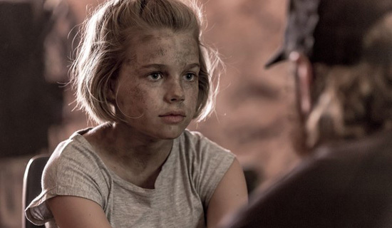 - Teagan: It was great seeing the make-up that was done. There was dirt and grime and blood. It was interesting to see it done. People had tattoos applied and they dyed people’s hair. That was fun but it took a long time. It was a half an hour for me to get mine on. As for something hard, a lot of scenes where I had to show a lot of emotion were hard. It was difficult because when you show emotion in film it has to be one hundred percent real. It can’t be faked because the cameras will pick that up. It was difficult to unlock that emotion originally but the director and the cast really helped me with that. I think I’m a much better actor because of that.